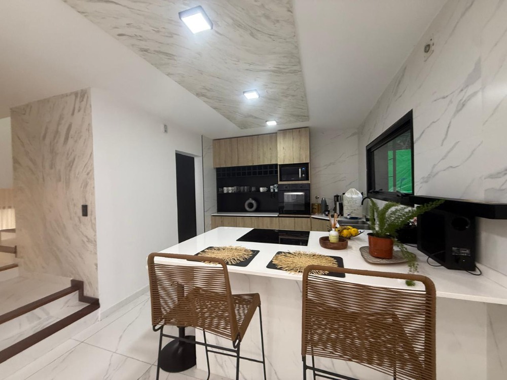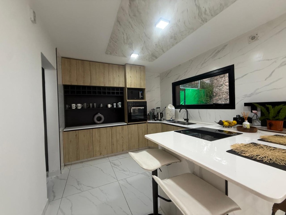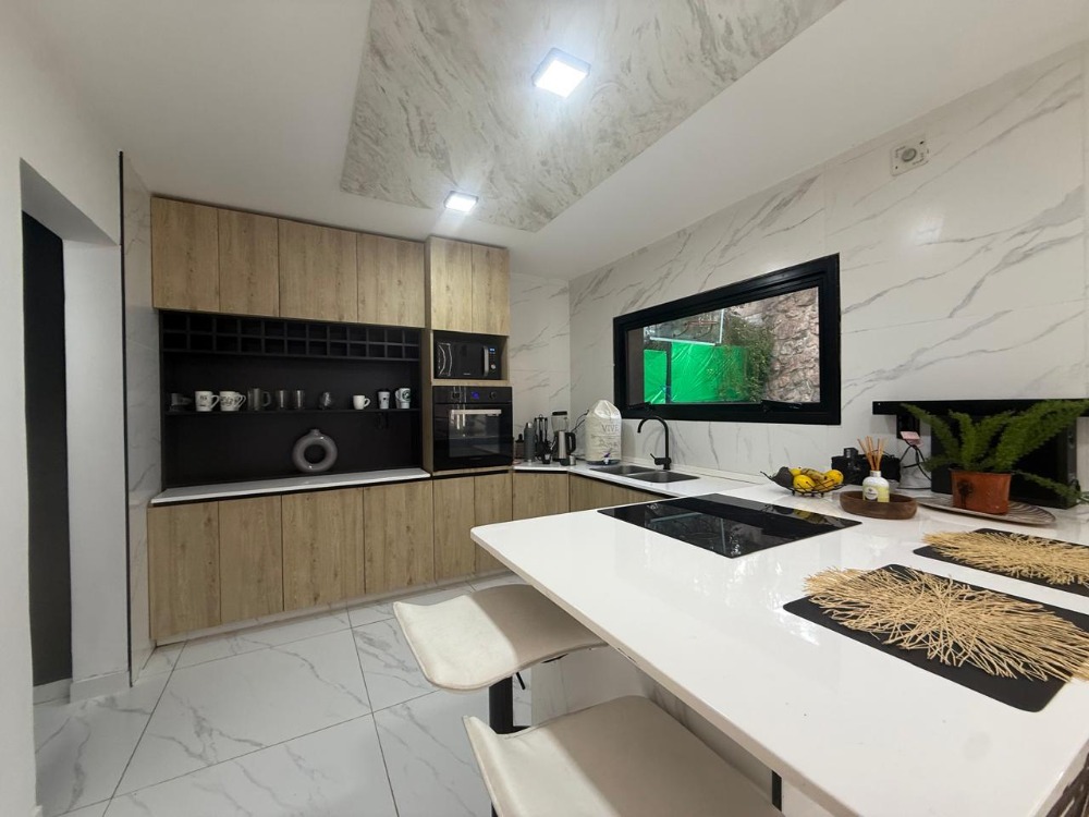 * **Cocina Gourmet:** Moderna y funcional, con vitrocerámico, horno eléctrico, microondas y una elegante isla central. Equipada con una heladera doble para todas sus necesidades.