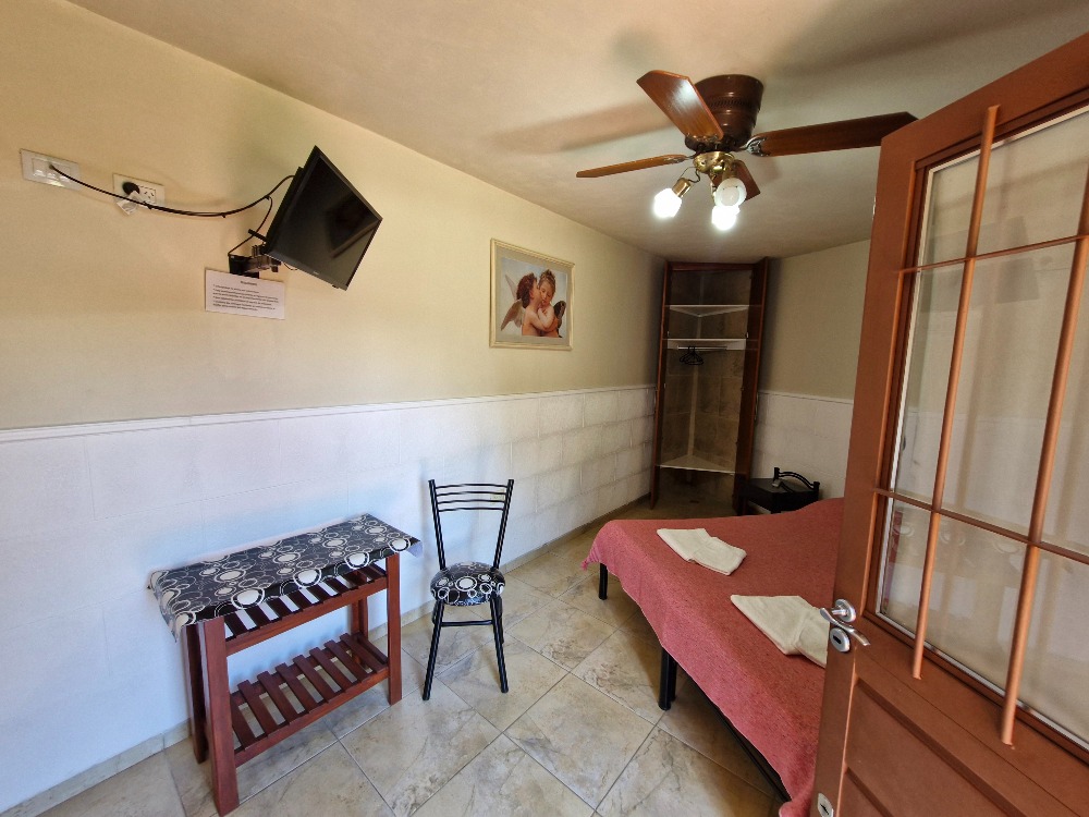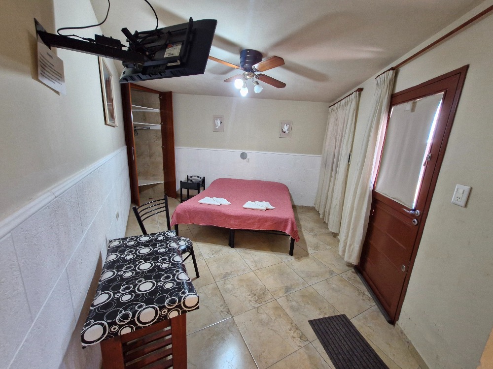* Cama matrimonial, placard, ventilador de techo y TV con cable.